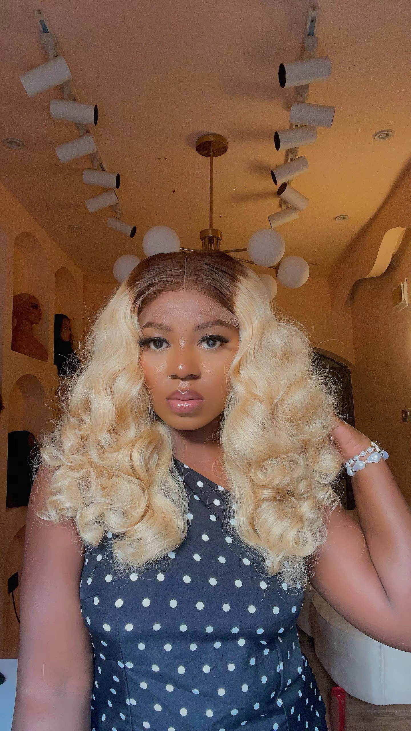 This Layered unit features a very bold 613 Color on a Super double drawn Wavy bouncy bundles .. Luscious, Voluminous , Pretty and so easy to style bouncy wavy curls .. This Wig will be your go-to glam wig
